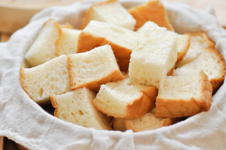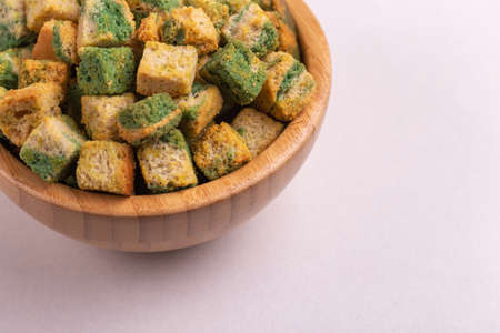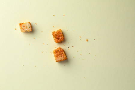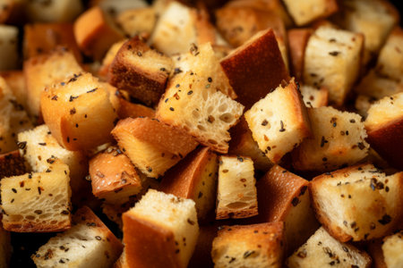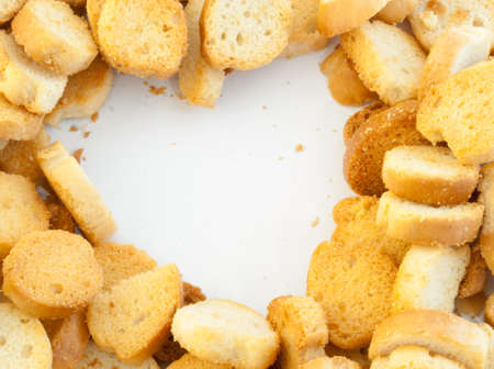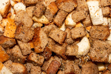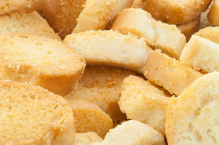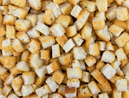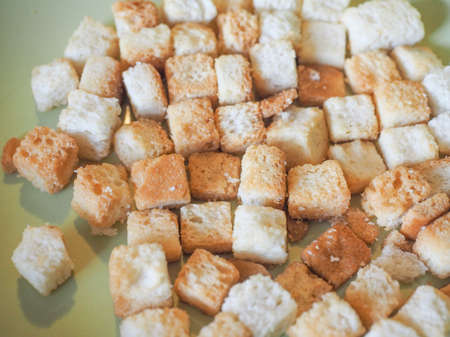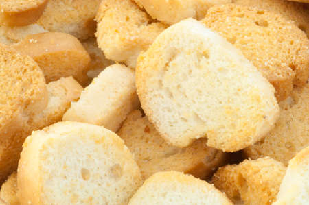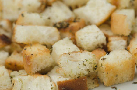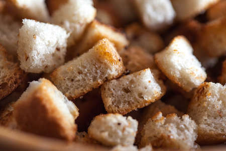 White bread high-fired croutons close-up focus at the centre.
