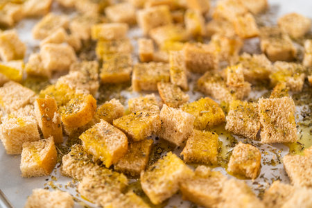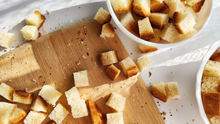 Homemade Crispy Bread Croutons for a Salad