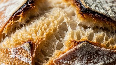 A beautifully captured slice of artisan bread showcases its airy crumb and crispy crust, perfect for culinary inspiration and food photography.