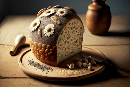 beautiful handmade bread with seeds and grains for breakfast