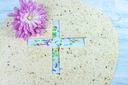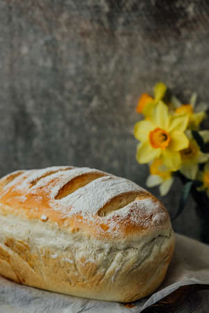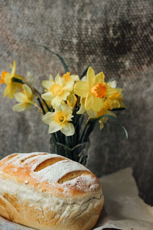 Easter background, fresh bread on the table, background of religion,