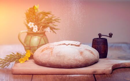 Homemade bread with lavender and spices, rustic still life