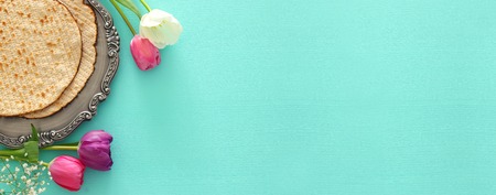 Blessings Pesach the ceremony ritual Jewish traditional holiday on Passover celebration of flowers and matzah bread
