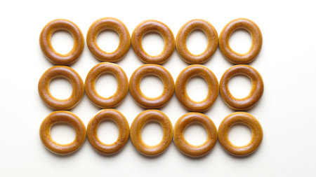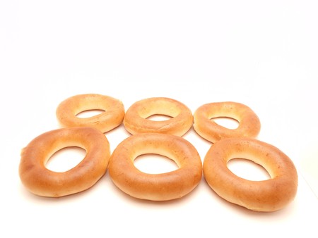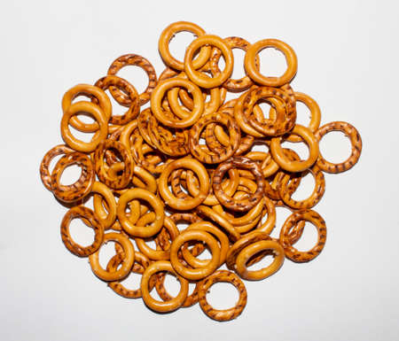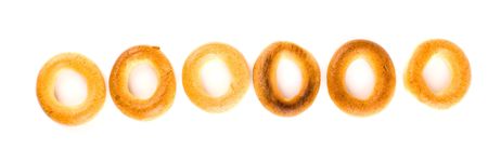 traditional Russian cookies small round bagels isolated on white background. Fast food snack, flour dishes, carbohydrate diet. Nine zeros, symbol of billion