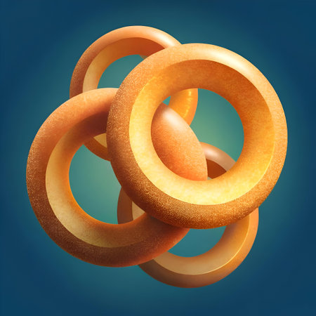 Abstract golden rings intertwine in a mesmerizing pattern. Perfect for design projects. technology concepts. or as a unique visual element.