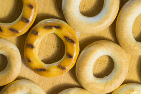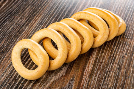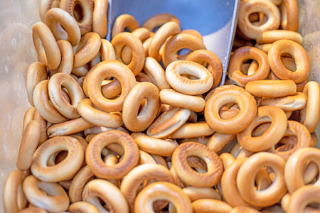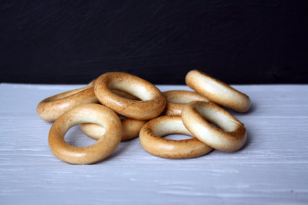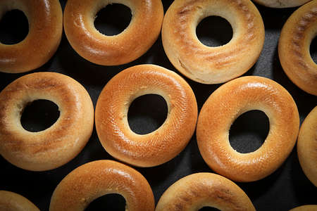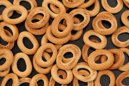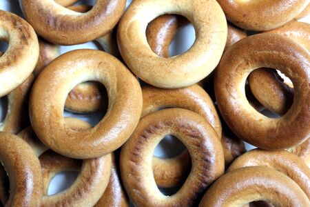 Baked round sushki sprinkled with salt. Traditional snack in Russia