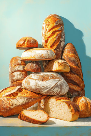 stack of different bread shapes, each one scored for neat and consistent slices, created with generative ai