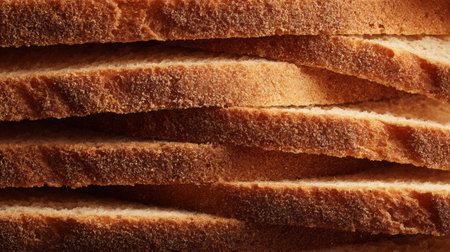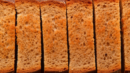 This image captures a close-up view of beautifully sliced toasted bread, showcasing its crispy edges and golden brown texture, perfect for culinary use.