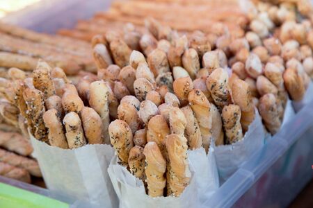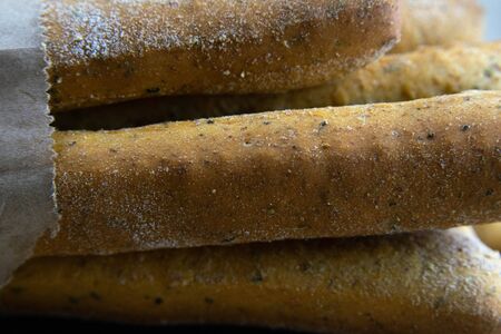 Grissini - traditional Italian salty breadsticks sprinkled with poppy seeds
