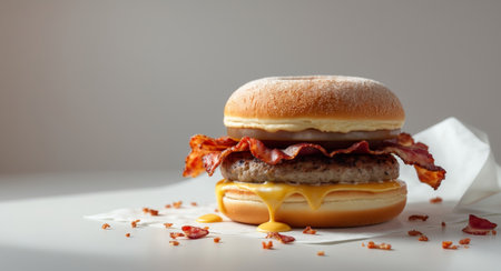 AI Generated. Crispy Donut Bacon Cheeseburgers Studio Shot