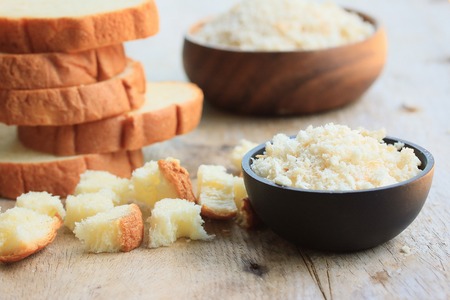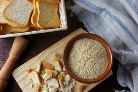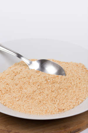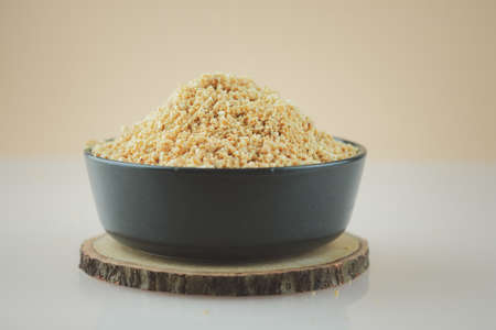 Bread Crumbs / Rusk Powder in Porcelain Bowl. Organic Food.