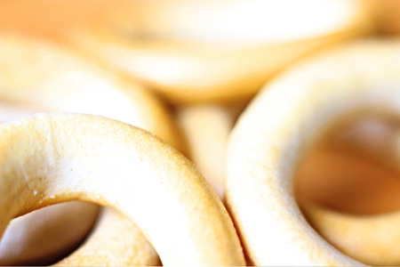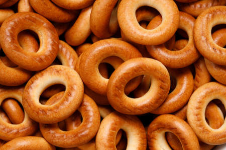 Small dryers. Dried bagels. Background. Lots of dried bagels.