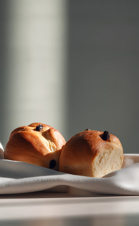 Raisin buns with raisins on a white cloth