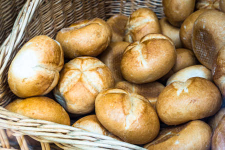 Bread roll or bun on napkin in basket