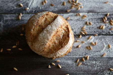 Whole grain bread on wooden table