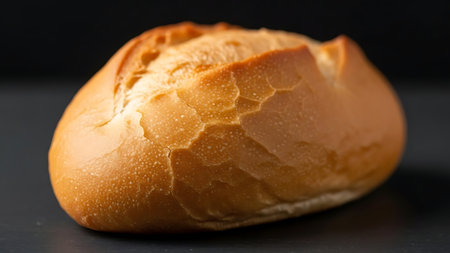 Simple bread roll with sugar sprinkle displayed in minimalist style. Clean light background enhances the details of the roll. Concept of bakery, dessert creation, culinary art.
