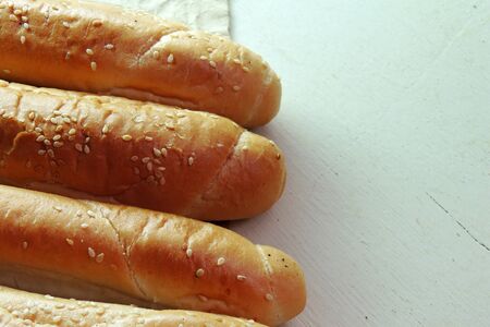 Freshly baked baguettes made by organic wheat flour, sugar, butter and milk that ready for sell.