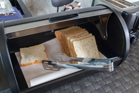 Selective Focused White Healthy Organic Farmhouse Sandwich Bread, ready to eat or toast in morning breakfast meal pantry.