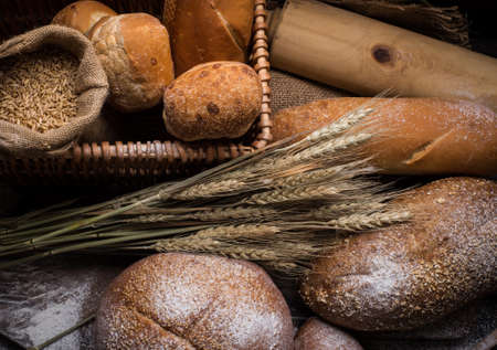Bread products on the table in composition