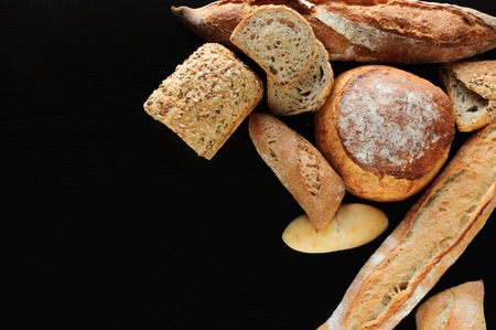 fresh variety bread on black background, food, diet, low carbohydrate high fat, gluten free,weight loss,