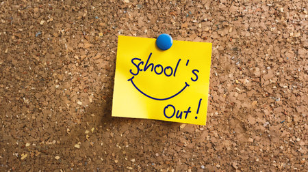 School's out. The inscription in wooden letters on a white background. Pencils on a white background