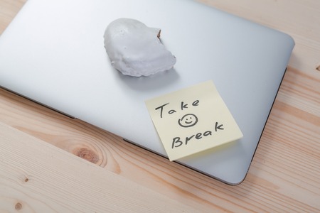 Work place,office room desk with sticky note text Take a break concept for relaxing,enjoy life. Copy space