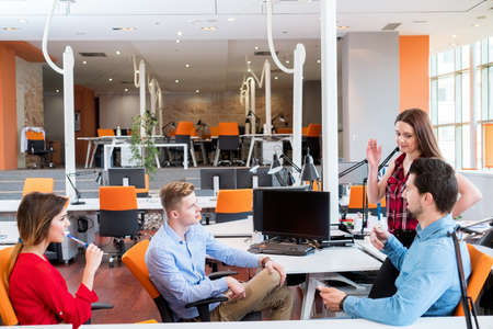 Young business colleagues talking at break. leisurely discussion creative business team.