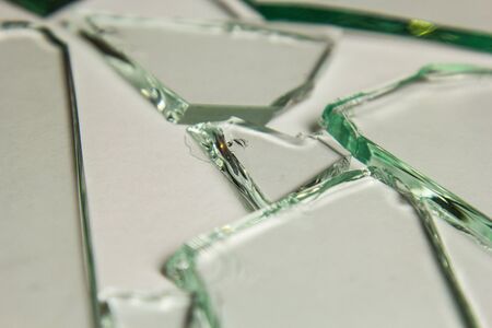 Broken glass shards. Broken pieces of broken glass on the floor.