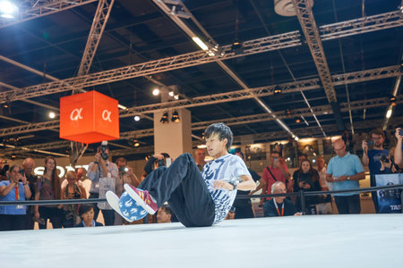 Artistic portrait of a breakdancer at Expo, universal exposition on the theme of food in Milan.