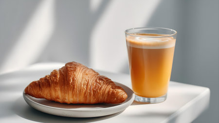 Croissant and a glass of coffee on a white background.ai generated