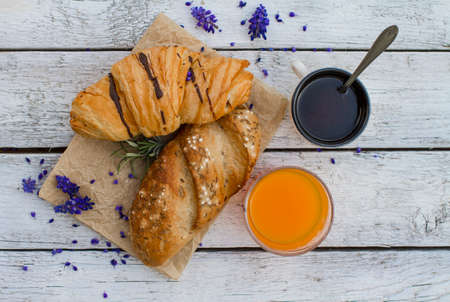 Continental breakfast with coffee, juice and pastry