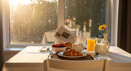 Breakfast table setting, Ai generated image