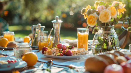 A festive Easter table filled with delicious food and colorful drinks for celebration ,.,