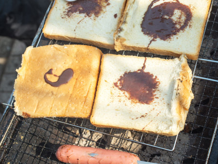 Asian toast. Thai street food vendor in Bangkok, Thailand. Streetfood in south east asia