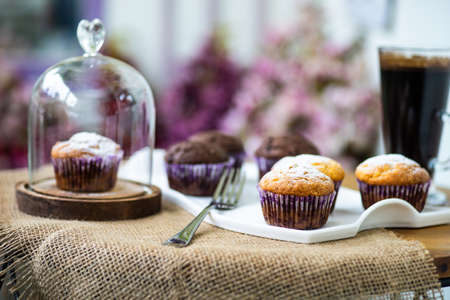 Fresh cupcake on the table baked at home. Delicious Breakfast fo