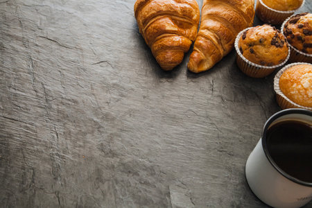 Cup of coffee and Homemade muffins