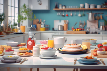 Family bonding over breakfast preparation a heartwarming scene captured at the dining table