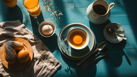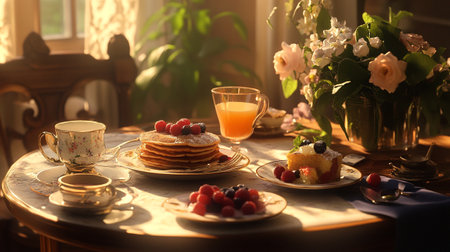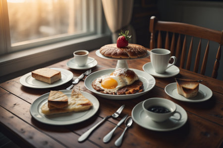 Breakfast table setting, Ai generated image