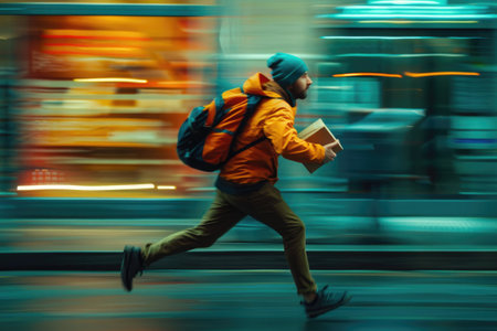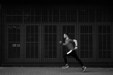 Man in sportwear running. Mixed media