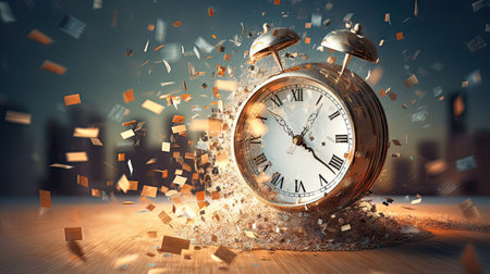 Leaving concept, clock breaks into pieces