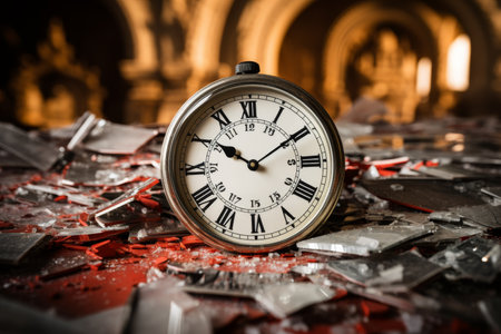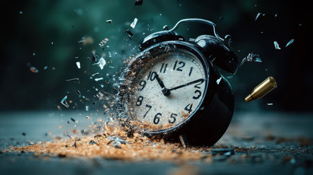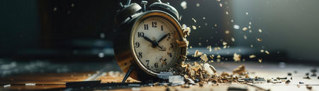 destroyed alarm clock on a wooden background