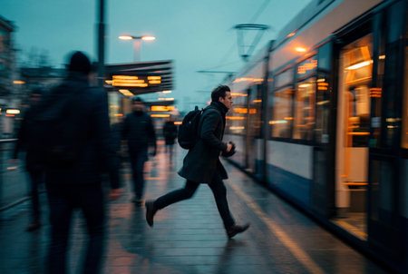 Panning technique of biker who is going for some work at evening on the road