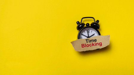 Time Blocking Productivity Strategy for Work and Focus with Clock on Yellow Background