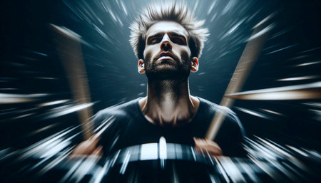 A tight, portrait isolated within the motion of a drummer, Ai generated image
