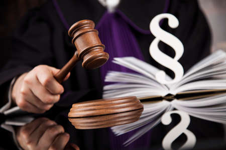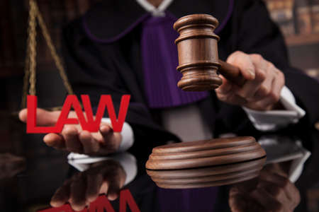 Justice and law concept, Male judge in a courtroom striking the gavel