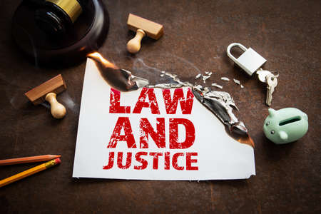 Symbol of the judicial process. Trials, verdicts, and cases. Concept for law, justice system, state regulation, legal protection, rights defense and criminal or civil disputes.