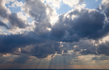 Beautiful storm clouds in the sky and the sun filtering through them