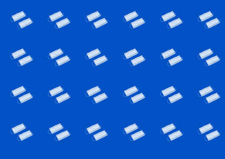 Pattern with light blue face mask on blue background. Coronavirus content.