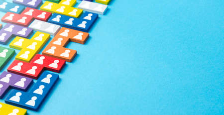 Puzzle figures with employees. Hiring new workers and recruiting staff. Personnel management. Social groups. Human resources. Labor market. Specialists and professionals. Hire temporary staff.