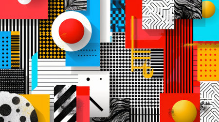 modern graphic design, design elements like bold shapes, halftone patterns, and bright colors for creating eye-catching visuals in graphic design